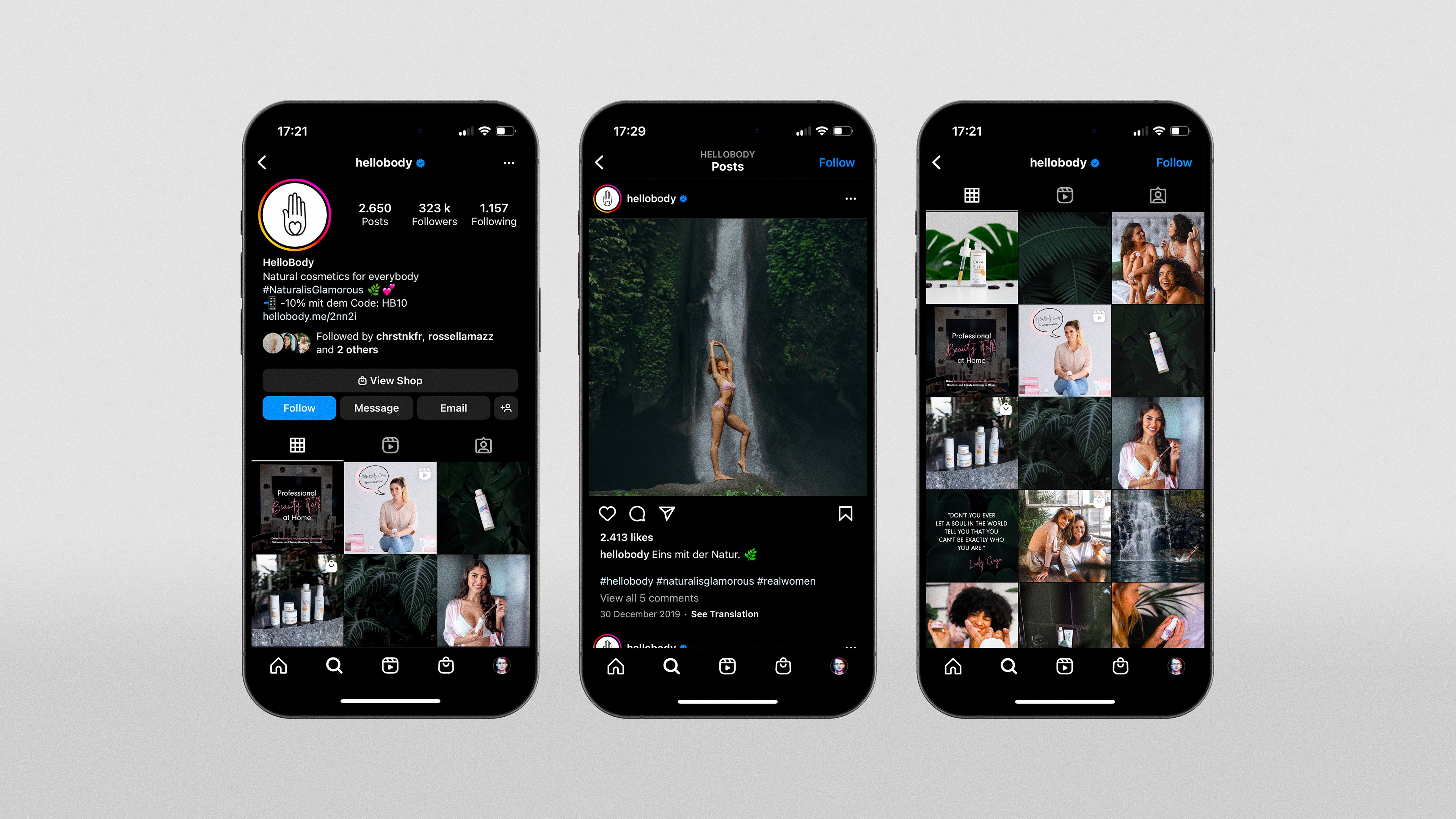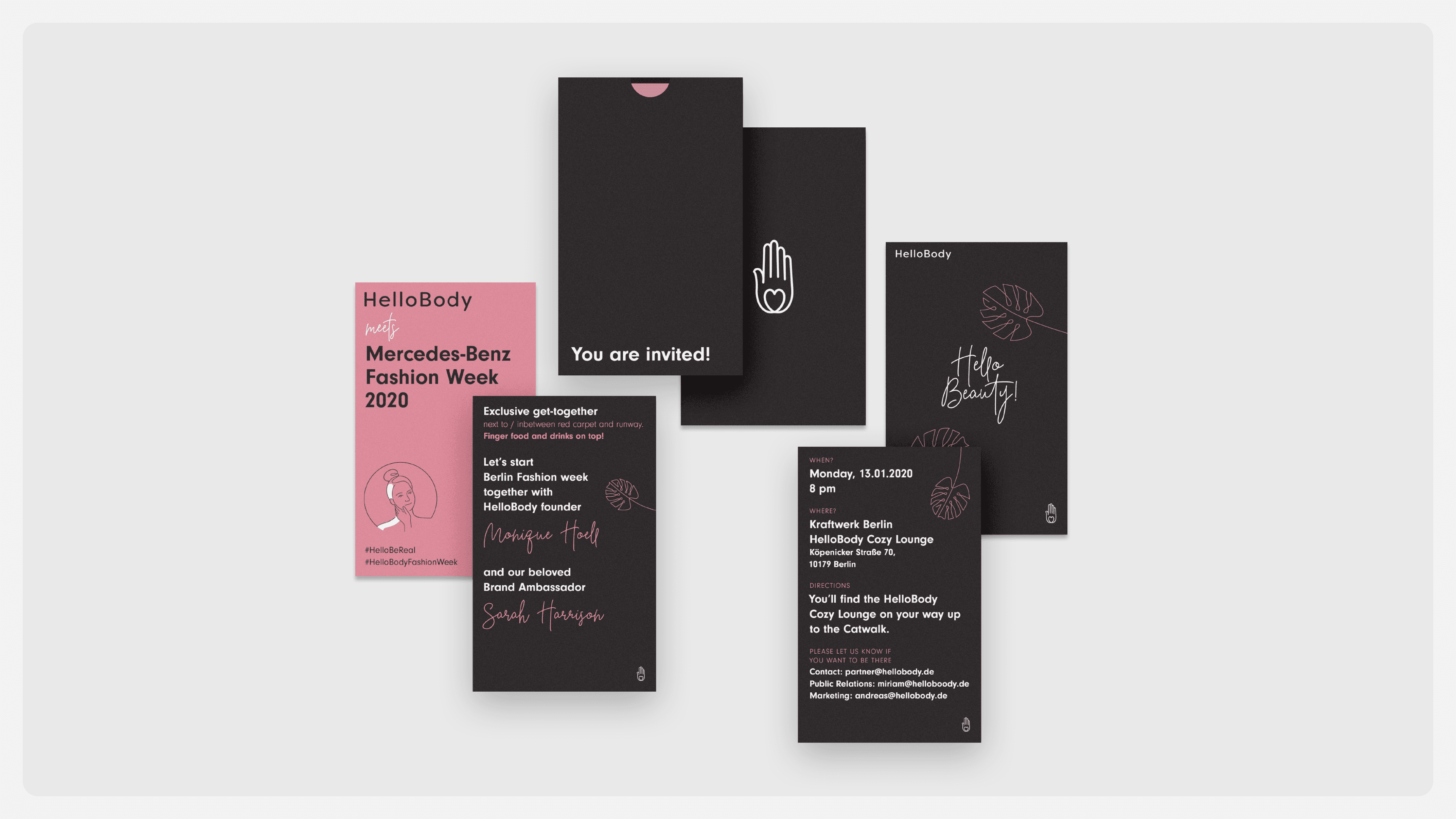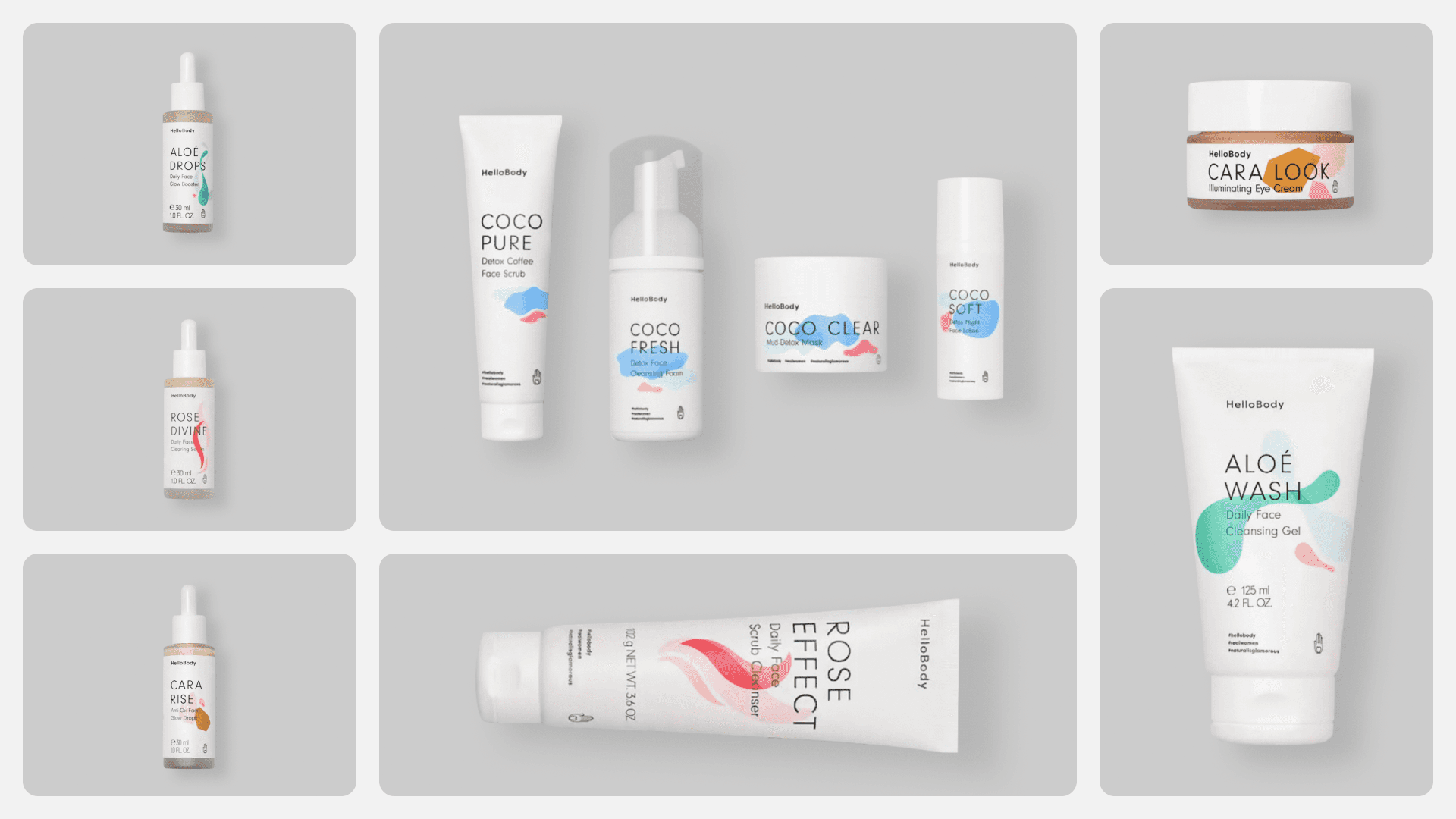 HelloBody is a natural skincare and lifestyle brand focused on accessible beauty. I created an entirely new visual identity with a whimsical, fairytale-jungle atmosphere — including social media templates, print materials, packaging systems, and full e-commerce design. I designed every single piece of product packaging for the entire brand lineup.