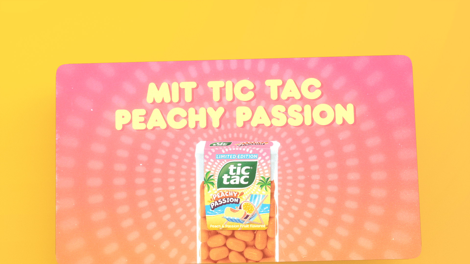 For TicTac’s sponsorship of Lollapalooza, McCann provided the campaign design and storyboards for a series of social-media ads promoting the Peachy Passion flavor. The theme centered around summer, with the headline “Refresh Your Summer,” supported by both German and English voiceovers. My task was to bring these boards to life through vibrant, energetic motion that matched the festival atmosphere and brand tone.
